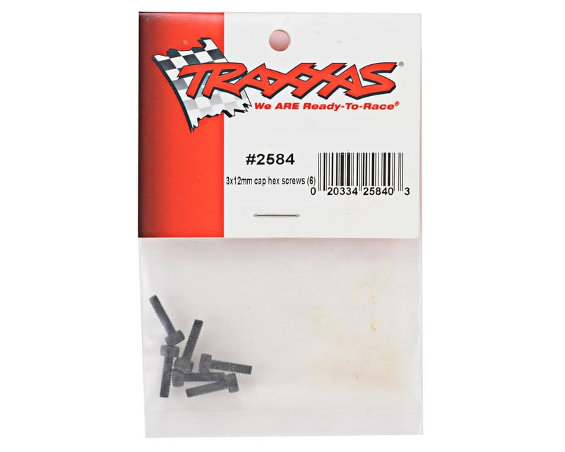 3x12 mm cap-head machine screws with hex drive heads. Set of six.