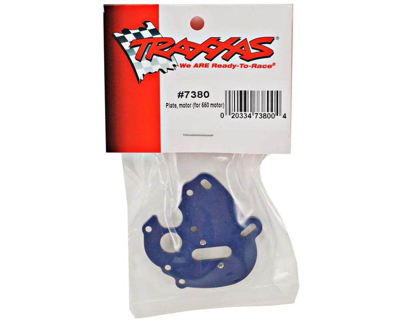 Blue aluminum motor plate for 1/16 scale vehicles with the Titan® 550 brushed motor