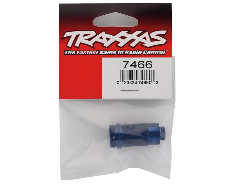 The blue-anodized aluminum long 1/10 scale GTR threaded shock body is coated with PTFE for long-lasting, ultra-smooth damping performance. One per package.