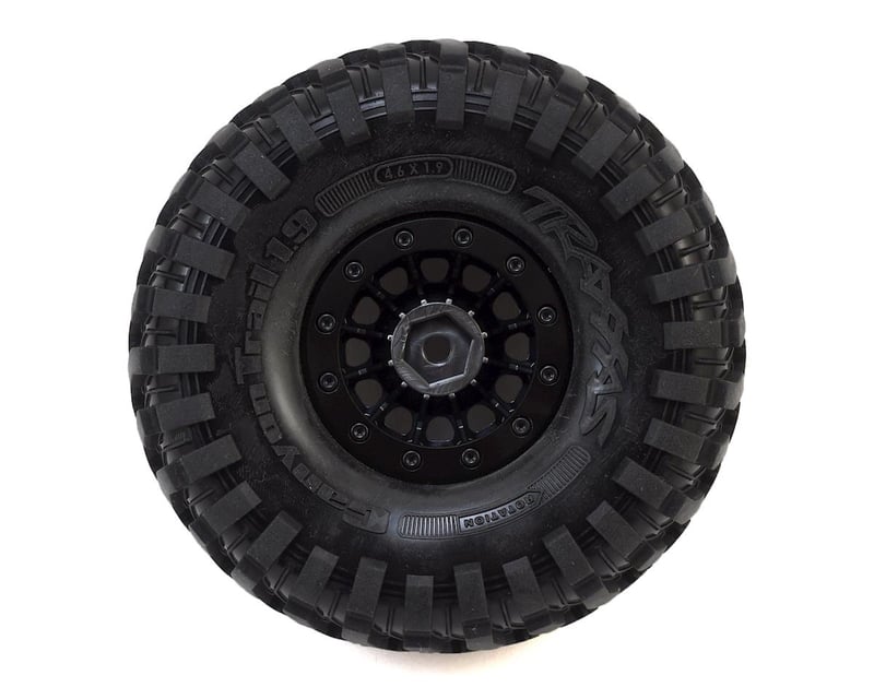 1.9" black chrome 105 Method Race Wheels® come assembled and ready to mount with pre-installed foam inserts and mounted Canyon Trail 1.9" x 4.6" tires. Functional black beadlock rings hold the tire bead securely to the rim for intense off-road action. Sol