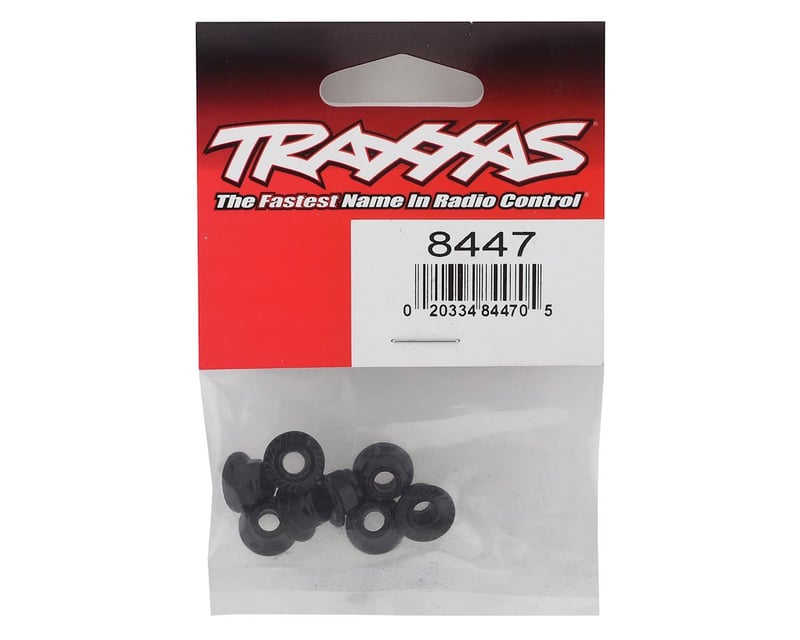 Set of eight 5 mm black flanged serrated steel nylon locking nuts