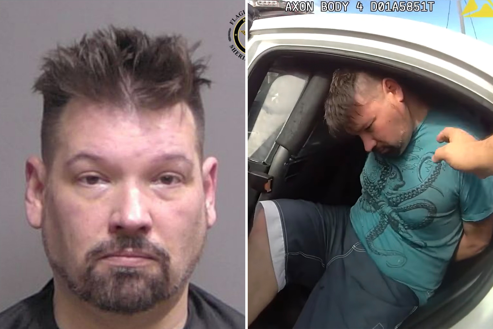 Kevin Cichowski, 46, allegedly beat one victim with a cane and chucked a cellphone at the other inside a riverside home in Palm County, Florida on Friday, according to the Flagler County Sheriff’s Office.