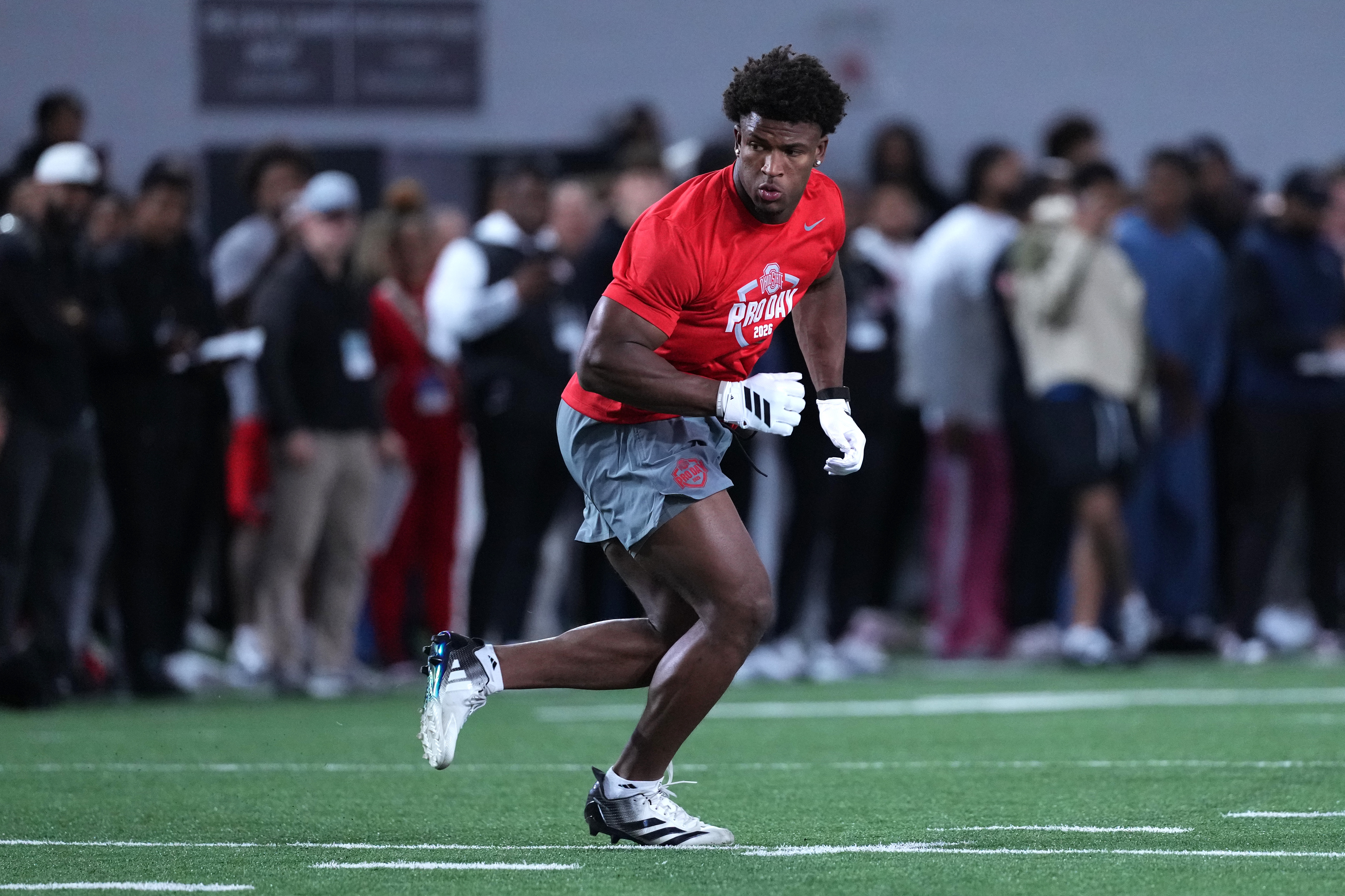 Caleb Downs of the Ohio State Buckeyes participating in drills during 2026 Ohio State Pro Day. Getty Images Downs is a superior player in almost every way, but he might not be the dynamic, special athlete that warrants the No. 5 pick in this draft.
