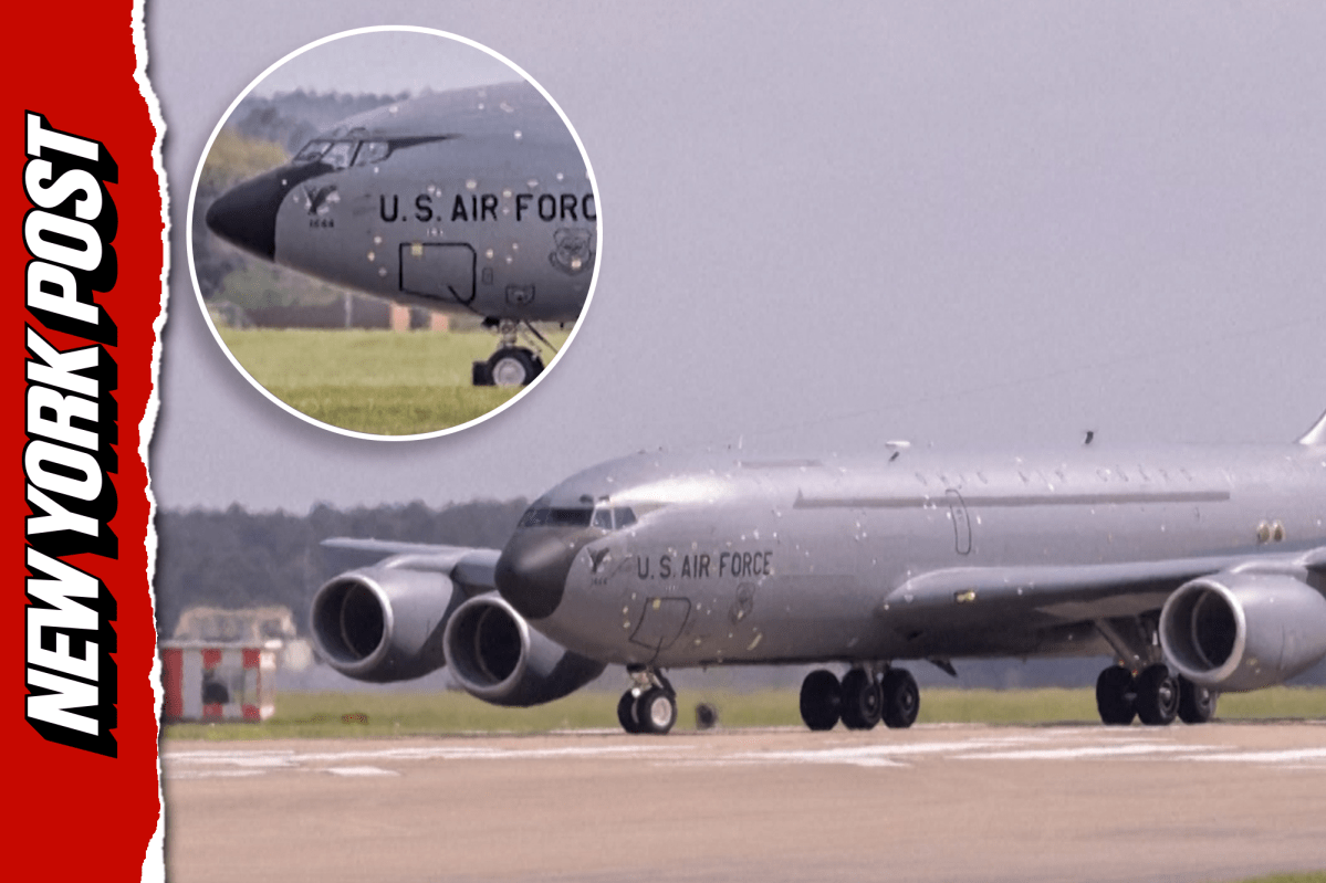 Damaged USAF KC-135 lands in UK, expert says marks consistent with shrapnel