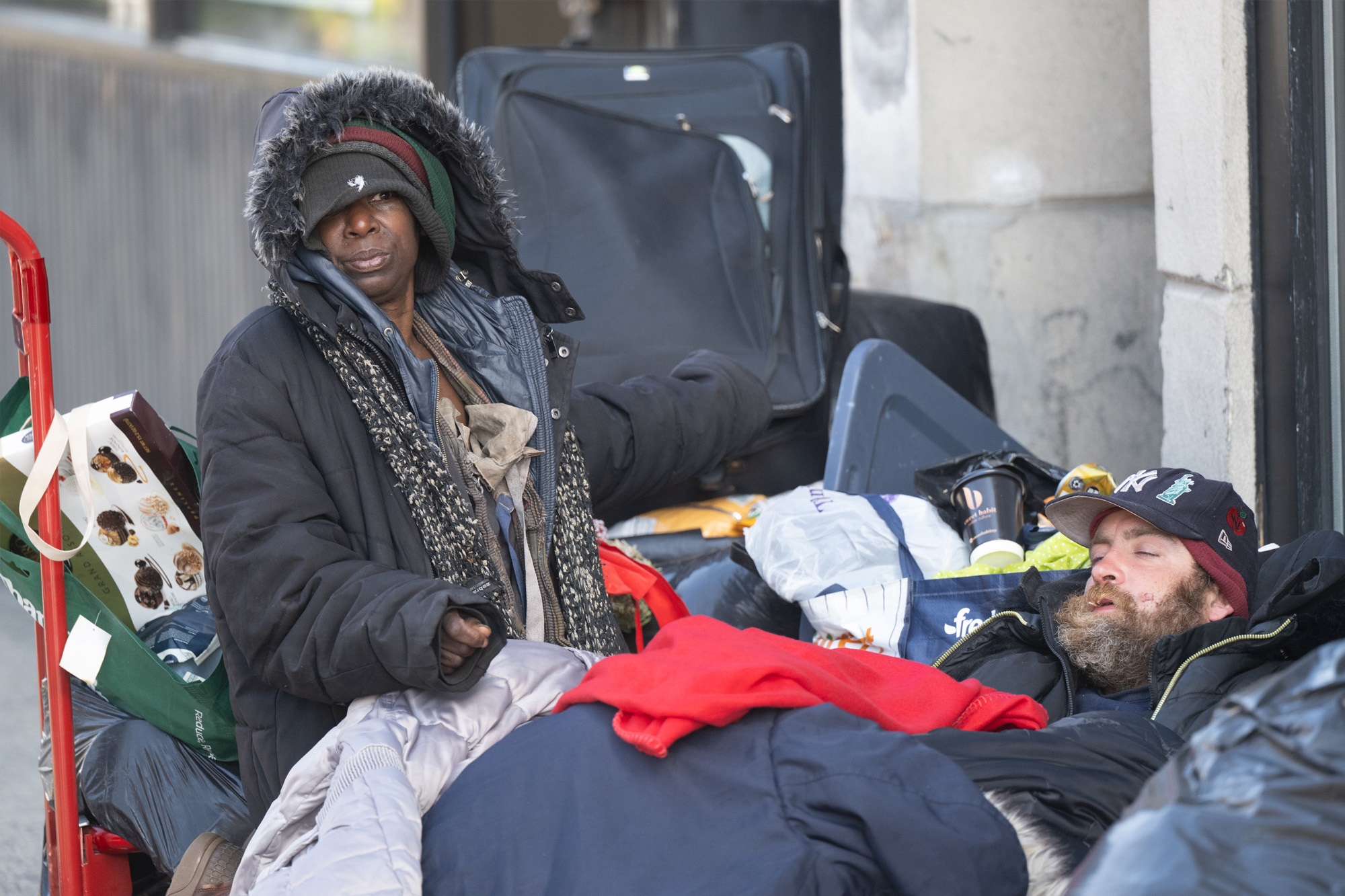 Two unhoused people bundled in warm clothing sit on a street next to their belongings. If 2,200 members of any other identifiable population were dying annually in LA County at four times the general mortality rate, we would call it what it is: a public health emergency.