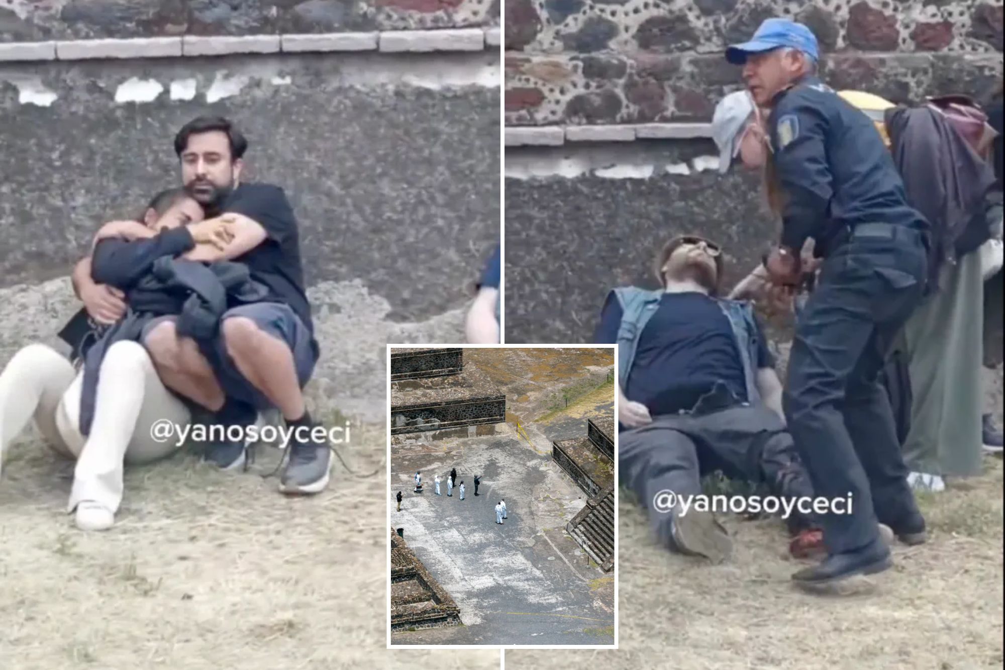 Chilling new video shows the moment tourists rushed to save the life of a Russian man who was shot by a deranged gunman atop one of the pyramids at Mexico’s Teotihuacán ruins.