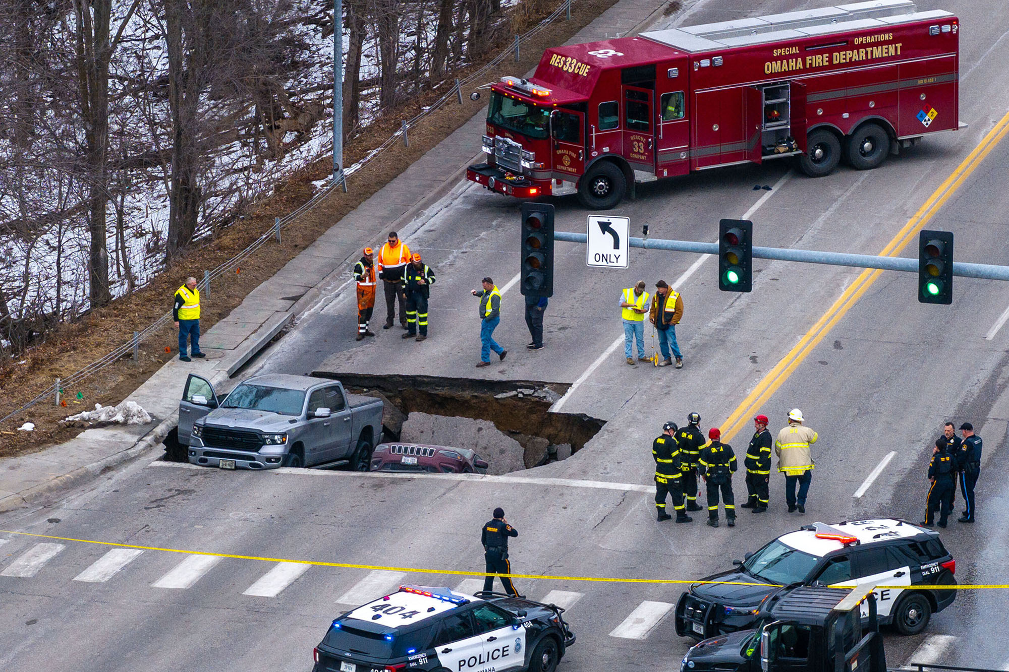 Sinkhole suddenly opens at red light, swallowing Nebraska drivers