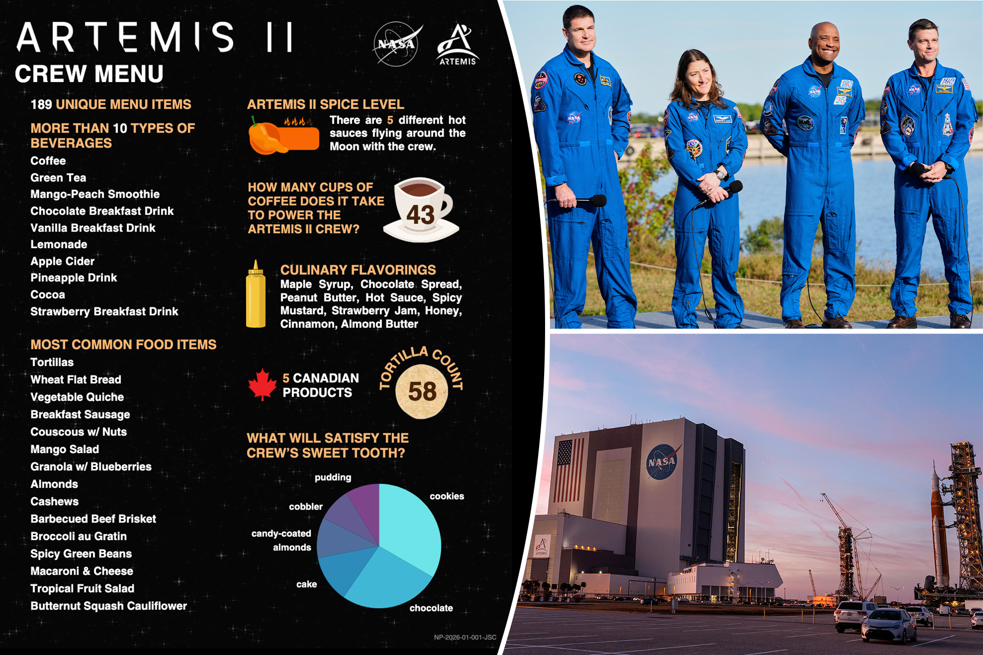 Mango salad, beef brisket and 5 types of hot sauce: Artemis II astronauts will chow down on these 189 foods on the moon mission